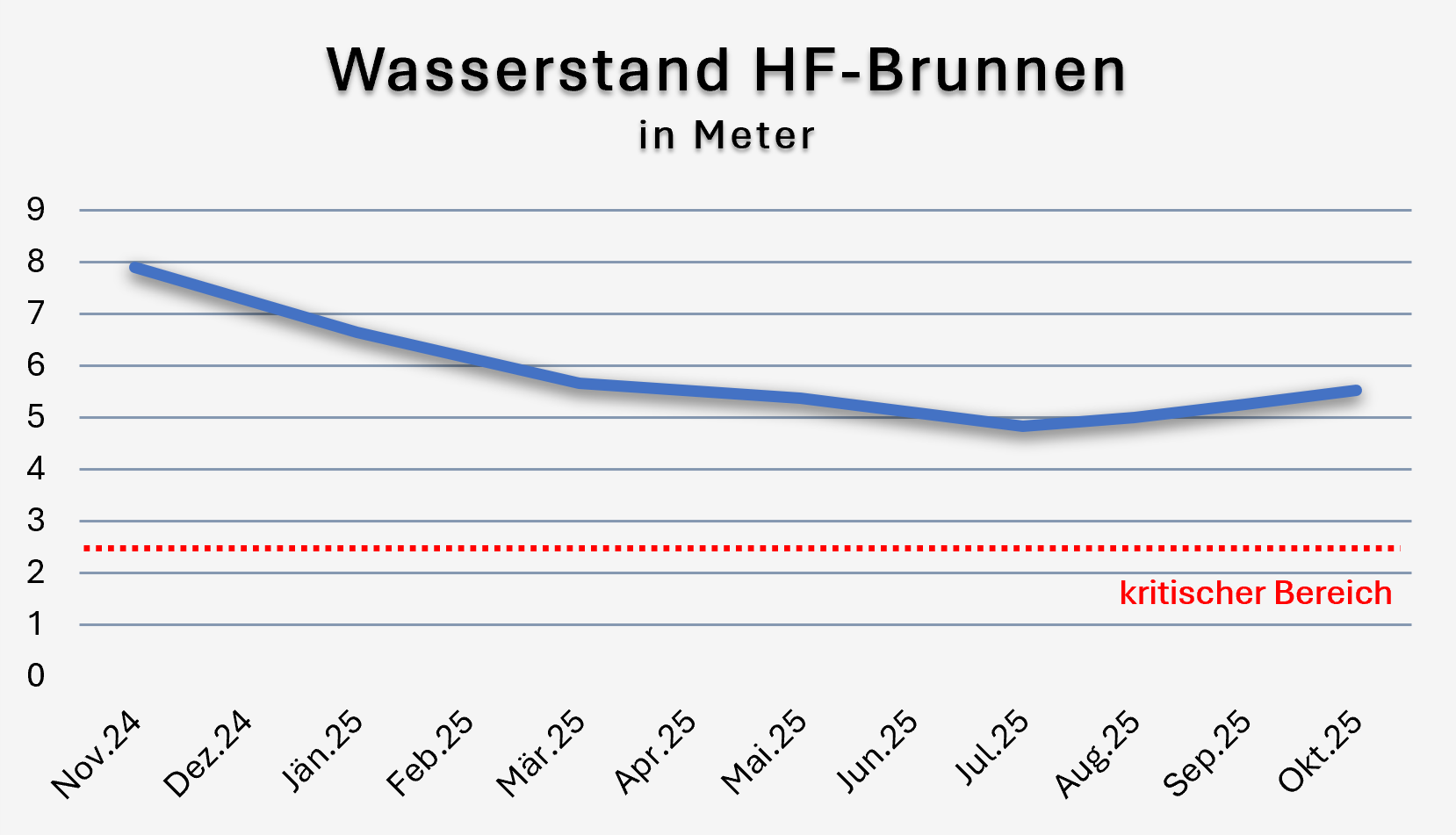 Vorjahresstand: Oktober 2024 / 8,28m (nach Hochwasser!)